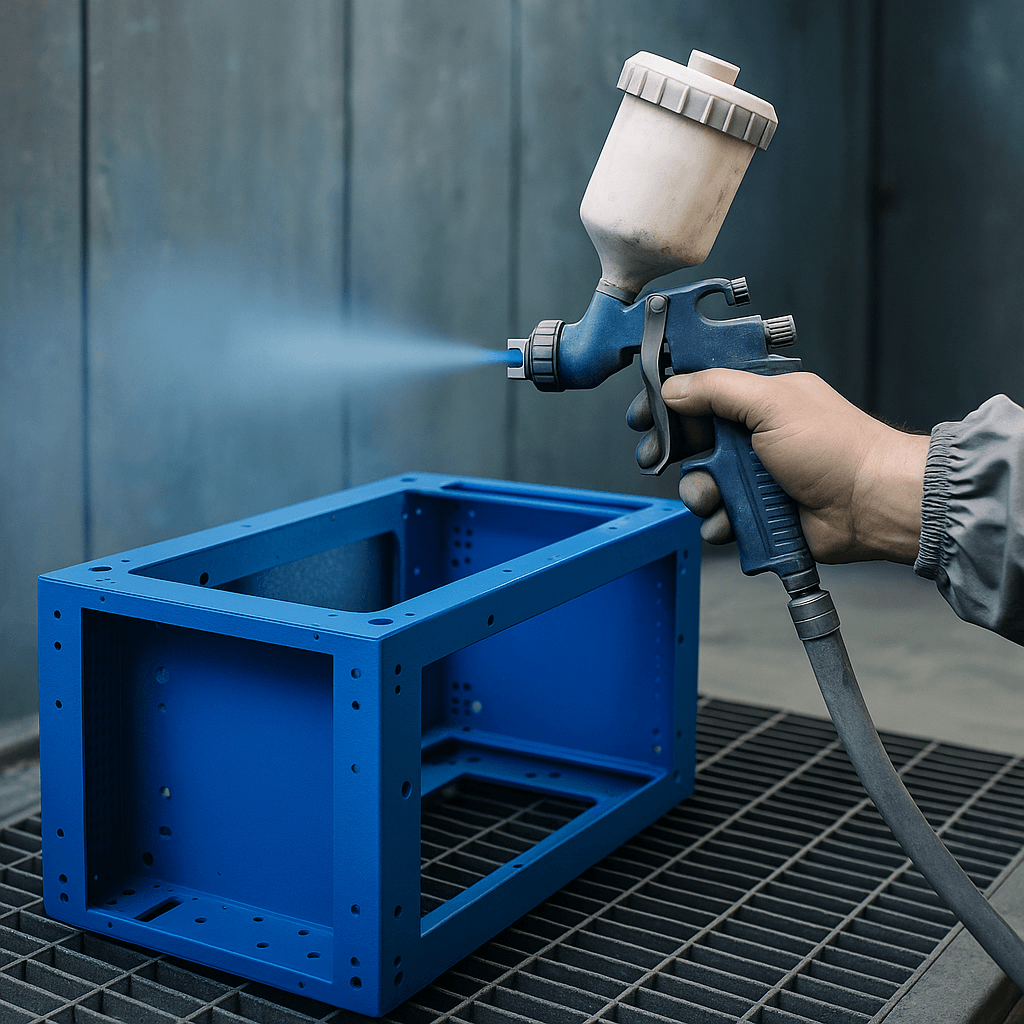 Najbardziej tradycyjne nanoszenie powłoki malarskiej wykorzystujące technologię natrysku pneumatycznego.